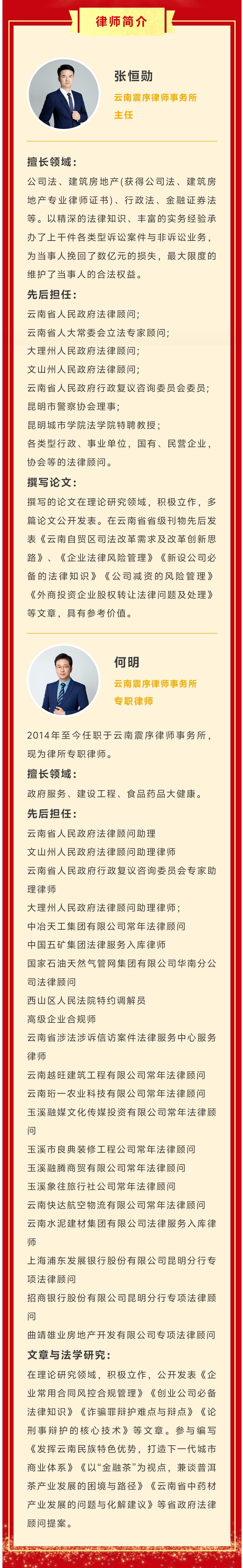 面对这份蝉联的荣誉,张恒勋律师表示,获评优秀既是肯定,更是沉甸甸的责任。在新的一年里,他将继续坚持以习近平新时代中国特色社会主义思想为指导,深入贯彻习近平法治思想和习近平总书记考察云南重要讲话精神,深刻领悟党的二十届四中全会精神,始终把坚持党的全面领导、服务高质量发展、以人民为中心、改革创新贯穿法律服务全过程。他将持续提升专业服务能力,紧紧围绕云南省委、省政府“3815”战略发展目标,聚焦云南特色产业、三大经济、法治政府建设、高水平对外开放等核心工作,以更优质、更高效、更精准的法律服务,当好省政府的参谋助手。
